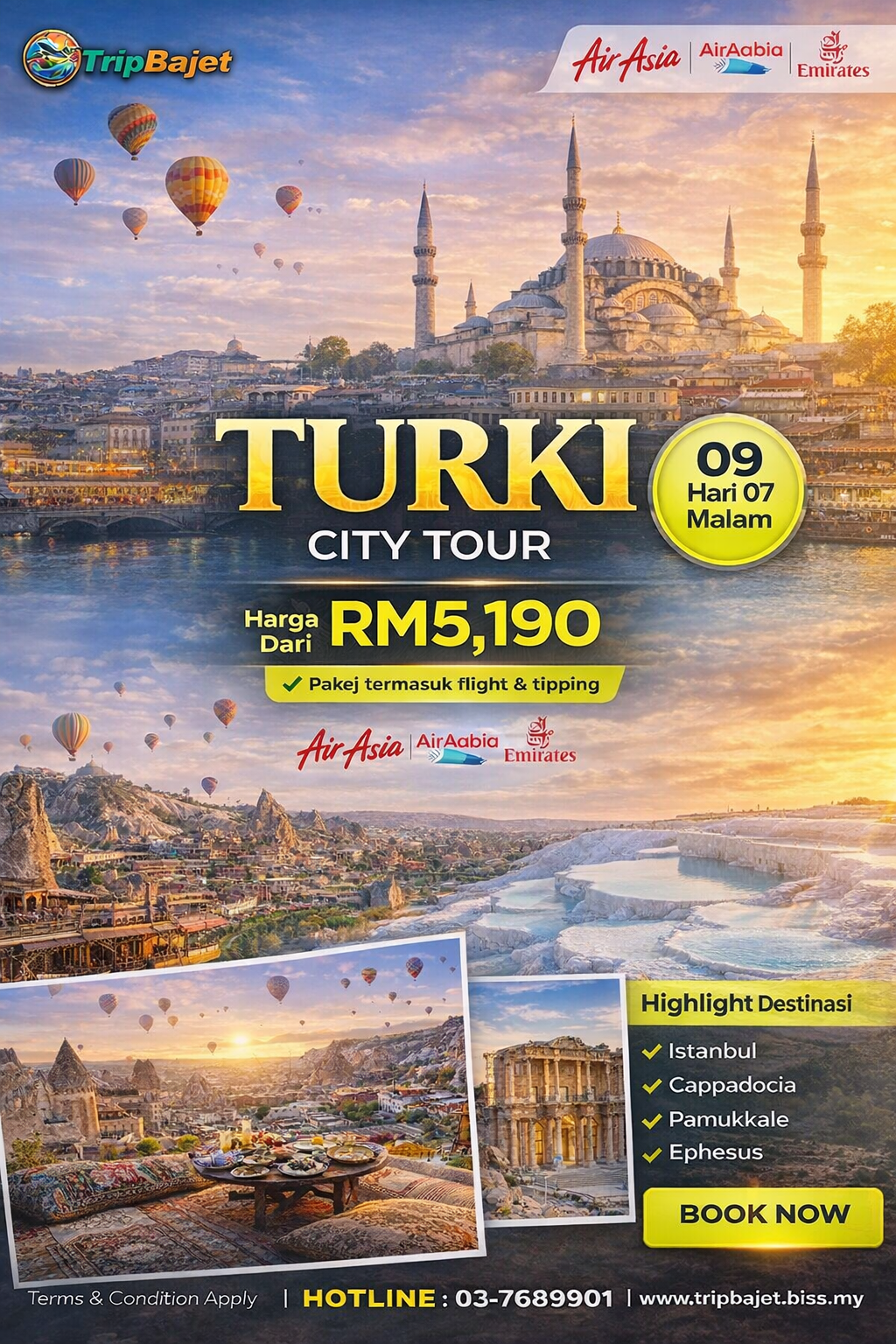 TripBajet ialah jenama pelancongan yang fokus kepada pakej Muslim-friendly untuk traveller Malaysia. Kami bantu anda travel luar negara tanpa stres urus itinerary, hotel, visa dan persediaan.